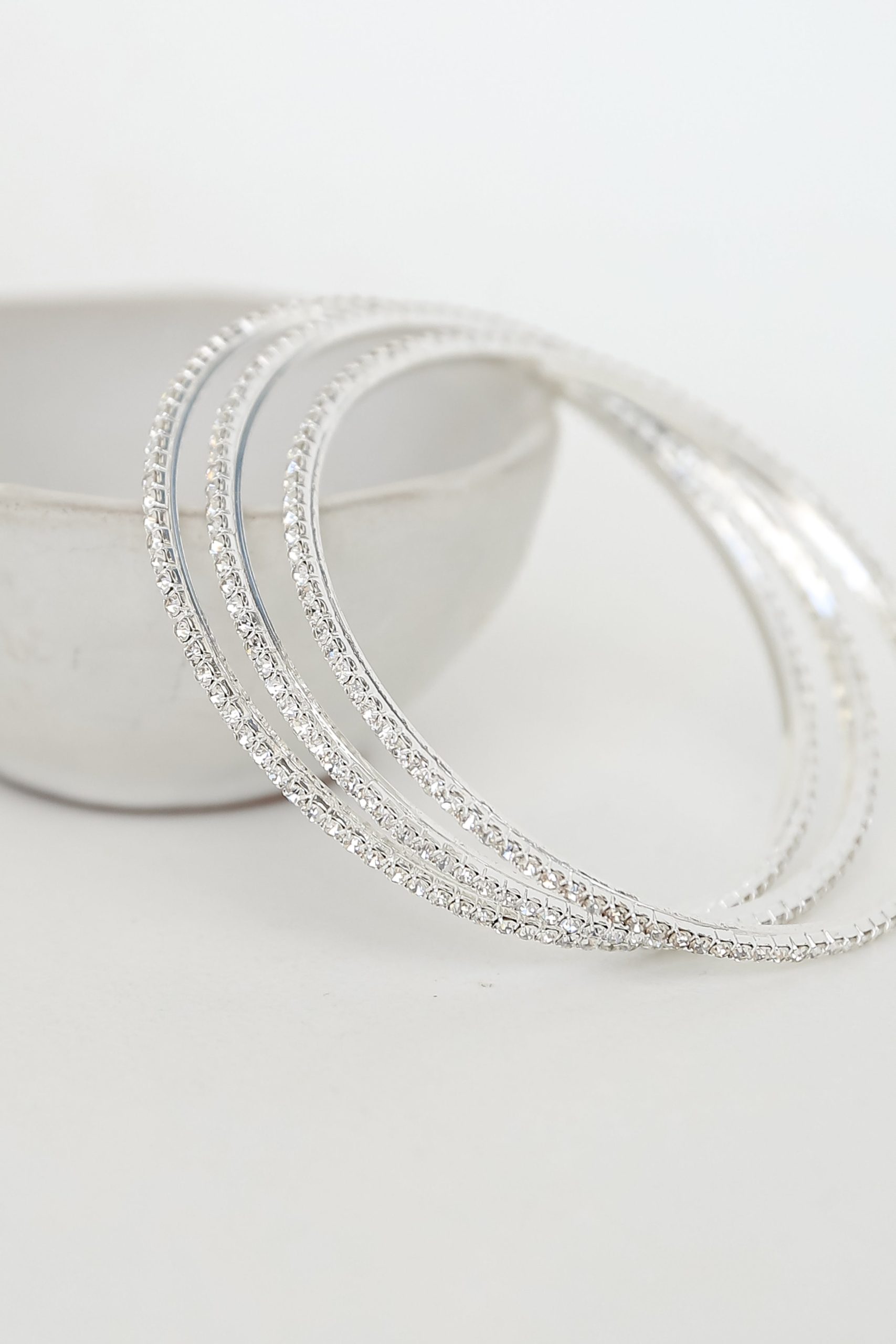 Perfecting your look is simple when you’ve got accessories like the Kayla Silver Rhinestone Bracelet Set! This set of three bangle bracelets is made of silver rhinestones. Wear them all together, or separately, either way you’ll love them! Set Bangles RhinestonesOne Size | Diameter 2.5”